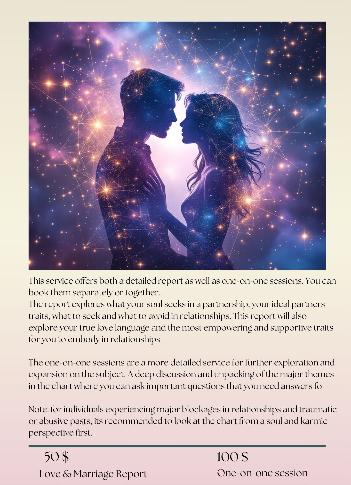 Rooted in the deep insights of Evolutionary Astrology, this reading helps you see beyond surface-level attraction or confusion, and into the soul contract at the heart of your relationship experiences. Whether you're seeking a new partner, healing from a past love, or navigating a current soul connection — this work offers profound clarity.